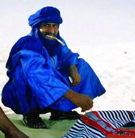 Als Kind faszinierte mich an dem Film “Lawrence von Arabien” der aus vielen Stoffbahnen zusammengenähte Schesch, die Kopfbedeckung der Tuareg. Ein leuchtendes Indigoblau, das vielleicht über Jahrhunderte hinweg die Unabhängigkeit der Tuareg bewahrte.