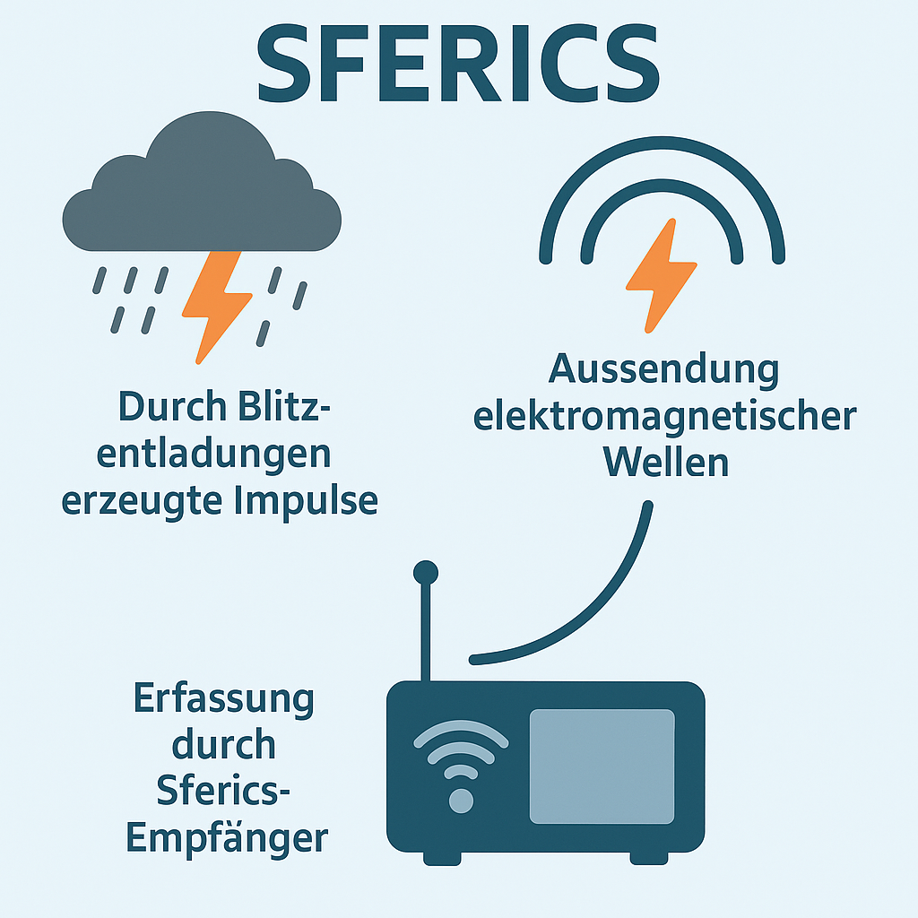Sferics sind elektromagnetische Entladungen, die ihren Ursprung nicht nur in weit entfernten Gewitterzellen, sondern auch in anderen metereologischen Vorgängen in der Troposphäre haben. Sferics sind dadurch gekennzeichnet, daß sie extrem kurz, meist zwischen 200µS und einigen mS, sind und in einem extrem breiten Spektrum auftreten. Auslöser sind überwiegend Blitze, die in Gewitterzellen auftreten, die mehr als 1000 km vom Empfänger entfernt sind und entlang der Magnetfeldlinien ausgebreitet werden. Blitz-Sferics, die in Mitteleuropa aufgenommen werden, entstehen in Gewitterzentren, die in Südeuropa und Afrika liegen. Ein Sferic weist seine höchste Amplitude im Frequenzbereich unter 10 kHz auf. Andere Sferics entstehen im Vorfeld großer Wetterzentren durch starke Luftmassenbewegungen, die die magnetischen Feldlinien beeinflussen. Diese Sferics weisen ein relatives Maximum um 20 kHz15 auf, sind größtenteils auf Frequenzen unter 40 kHz begrenzt und sind nur bis zu 200µS breit.
